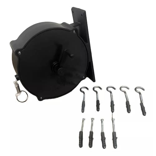 01 varal de parede com 30 metros de corda 05 ganchos prendedores + 05 buchas 04 parafusos + 04 buchas