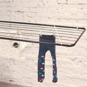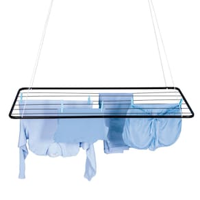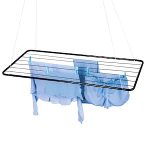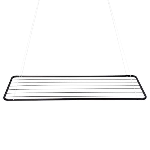 O Varal de Teto Preto é a solução perfeita para quem não possui muito espaço para secar as suas roupas. Disponível agora também na cor preta, conta com design moderno e super prático. Muito bem planejado, acompanha um kit para que você possa fixá-lo no teto e corda para que a altura possa ser regulada de acordo com sua necessidade. Possui estrutura em tubo de aço, com acabamento em pintura epóxi a pó preto e peças plásticas em polipropileno. Tem capacidade para 9,3m ou 14Kg de roupas úmidas distribuídas uniformemente. Leve e durável, possui qualidade nos acabamentos, garantia dos produtos Mor.
