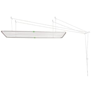 Perfeito para quem não tem muito espaço, o Varal de Teto MOR é a melhor escolha para secar suas roupas. Muito bem planejado, este produto vem com um kit para que você possa fixá-lo no teto e corda para que a altura possa ser regulada. Extremamente resistente com estrutura desenvolvida em alumínio.