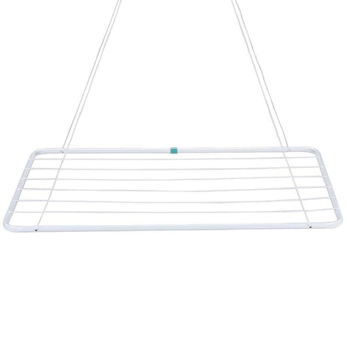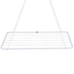 O Varal de Teto é a solução perfeita para quem não dispõe de muito espaço para secar as suas roupas. Muito bem planejado, acompanha um kit para que você possa fixá-lo no teto e corda para que a altura possa ser regulada de acordo com sua necessidade. Possui estrutura em tubo de aço com acabamento em pintura epóxi a pó branca e peças plásticas em polipropileno. Tem capacidade para 6,96 metros ou 12 Kg de roupas úmidas distribuídas uniformemente. Extremamente resistente, é indicado principalmente para regiões litorâneas. Leve e durável, possui qualidade nos acabamentos, garantia dos produtos Mor.