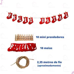 Conteúdo da embalagem: 1 varal de natal corda, 10 prendedores e 10 botinhas