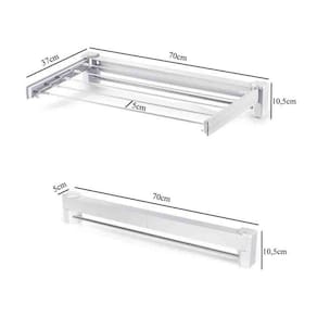 Varal de parede mágico retrátil fabricado em aço inoxidável e possui efeito sanfona, que proporciona mais praticidade e aproveitamento do espaço. Quando fechado, fica praticamente imperceptível na parede dando um efeito de sofisticação no local.Marca: Global MixCaracterísticas: -lateral dobrável. -possui 5 varetas. -suporta até 5kg. -compacto. -material: Aço inoxidável e ABS. -cor: Branco. -tamanho aberto: 70 x 10,5 x 37cm. -tamanho fechado: 70 x 10,5 x 5cm.Conteúdo: -1 Varal de parede. -parafusos e buchas.Aplicação: Ideal para quem não tem muito espaço e quer deixar tudo organizado. Deve ser instalado apenas em paredes.Código: GH109 Marca: Global Mix