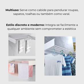 Varal Retrátil de Parede 80cm Economia de Espaço com Estilo Transforme qualquer cantinho da sua casa em um espaço funcional e organizado com o nosso varal retrátil dobrável de parede de 80cm Com um design moderno, minimalista e extremamente prático, ele é a solução ideal para quem precisa de versatilidade sem abrir mão da elegância. Pronto para surpreender: Com apenas 4cm de profundidade quando fechado, passa quase despercebido no ambiente. Aberto, oferece 80cm de estrutura firme e resistente para secar roupas, pendurar toalhas, organizar sapatos ou até brinquedos Ideal para: Lavanderias pequenas Quartos e closets Banheiros Varandas Quartos infantis como porta-brinquedos Fácil de instalar, acompanha suporte para fixação na parede. Características Técnicas: Material: Aço com Pintura eletrostática Tamanho aberto: 80cm largura x 40cm profundidade x 9,5cm altura Tamanho fechado: Apenas 4cm de profundidade Dobrável e retrátil: Ganhe espaço com praticidade Cores disponíveis: Branco Peso aproximado: Leve e fácil de manusear Instalação: Fixação direta na parede com parafusos inclusos Este varal também pode ser como suporte para roupas passadas, organizador de roupas do dia a dia ou até mesmo como expositor de produtos leves em lojas físicas do vendedor: 1 meses Marca: Não Informado