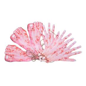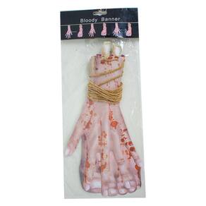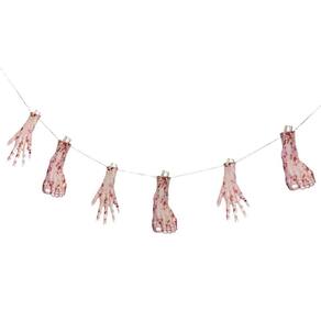 Varal mãos e pés sangrentos com 6und 1.8m halloween contém: 01 faixa decorativa de halloween mãos e pés com 6 bandeirinhas dimensões da faixa: 1,8 m de comprimento dimensões da bandeirinha: 35 cm de altura e 12 cm de largura composição: papel cartão imagem meramente ilustrativa. Pode ocorrer mudanças no tom da cor para o produto real ou mudanças na embalagem sem aviso prévio por parte do fornecedor/fabricante.