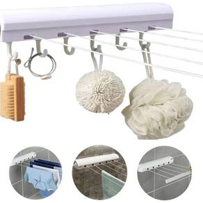 Varal De Parede Retrátil Automático Secador Recolhivel + 6 Ganchos Varal De Parede Retrátil Automático Secador Recolhivel + 6 Ganchos Varal Retrátil de Parede 5 Cordas Automático com Trava e Ganchos - Até 3,75m Transforme sua lavanderia com o Varal Retrátil Automático de 5 Cordas, a solução ideal para quem busca praticidade, organização e economia de espaço. Com design compacto e funcional, o varal oferece cinco cordas retráteis com sistema de recolhimento automático, além de 6 ganchos extras para pendurar toalhas, esponjas, escovas ou outros acessórios. Perfeito para uso em lavanderias, banheiros, varandas ou áreas de serviço, o varal pode ser estendido até 3,75 metros e suporta aproximadamente 3 kg por corda. Possui trava de segurança lateral, que impede o fechamento automático durante o uso, garantindo mais estabilidade e controle. Benefícios do Produto: 5 cordas retráteis com recolhimento automático Trava lateral para uso seguro Acompanha 6 ganchos multiuso Design compacto que economiza espaço Fácil instalação na parede Ideal para pendurar roupas, toalhas, objetos e mais Pode ser com ou sem os ganchos Especificações Técnicas: Material: Polipropileno e Nylon Cor: Branco Suporte de peso: até 3 kg por corda Comprimento do varal fechado: 37 cm Largura: 6 cm Comprimento total das cordas esticadas: 3,75 metros Espaço entre as cordas: 6 cm Conteúdo da Embalagem: 1 Varal Retrátil de 5 Cordas 6 Ganchos 1 Kit de Instalação Marca: Não Informado