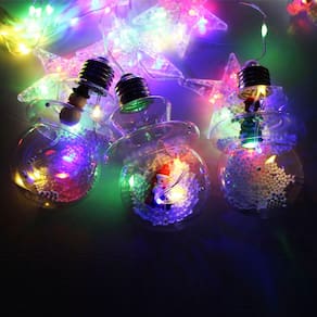 1 Cordão De LEDs Decorativo Para O Natal Com Bolas E Estrelas Coloridas 3 Metros De Comprimento;