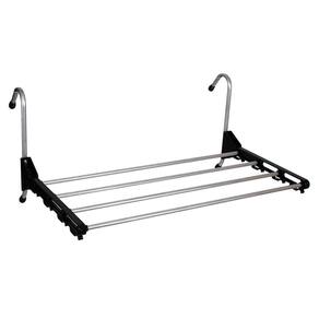 Varal Portátil de Encaixar na Porta Ideal para porta, box e janela.Fixado pelas hastes e em parede por parafuso.Projetado para otimizar o espaço.Acomoda até 6kg de roupas. Características:- Varal com 4 varetas de alumínio.- 8 prendedores embutidos na bandeja que permite pendurar pequenas peças. Fácil montagem devido ao seu design moderno, acompanha manual. - Acabamento:Abs/alumínio - Dimensões:Altura 27cm x Profundidade 33cm x Largura 60cm. - Garantia:1 ano contra defeito de fabricação. Comercial SD Eletro-Eletrônicos e Utilidades Ltda