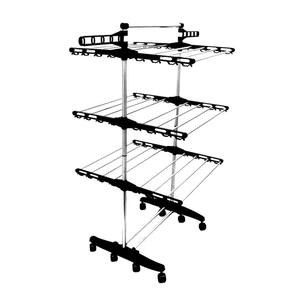 PRODUTO ORIGINALVocê receberá o suporte exatamente igual a foto, com 1 ano de garantia.Ideal para locais com espaço reduzido, apartamentos, casa de praia e lavanderias, acomoda até 40kg de roupas para secar em seus 15 metros lineares.- Características:Varal multifuncional com 3 andares de prateleiras retráteis, projetados para otimizar o espaço da sua lavanderia e proporcionar uma melhor secagem de roupas, toalhas, roupas íntimas e calçados. Rodas para fácil manuseio e ótima opção de armazenagem.Sua estrutura em alumínio proporciona durabilidade em ambientes com maresia.Possui abas laterais móveis para pendurar cabidesAcomoda até 10Kg em cada bandeja.Fácil montagem devido ao seu design moderno, acompanha manual.- Acabamento:Abs/alumínio- Especificação:Dimensões:Aberto - Altura 1,31m x Largura 60cm x Profundidade 67cm.Fechado - Altura 1,31m x Largura 60cm x Profundidade 23cm.Acompanha:- 8 Rodinhas;- 1 Base montada;- Suporte para Aerógrafo;- 2 Tubos Laterais para parte Inferior;- 2 Tubos Laterais para parte Superior;- 1 Tubo Superior com Cotovelos;- 2 Portas Cabides;- 6 Suportes de Bandejas;- 6 Bandejas;- 12 Pinos de Bandejas.Peso aproximado do produto:3kg- Garantia:1 ano contra defeito de fabricação.As rodas seguem com hastes dobráveis para ocupar pouco espaço quando não utilizado e são giratórias de acordo com a foto do anúncio.Comercial SD Eletro-Eletrônicos e Utilidades Ltda