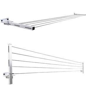 Varal Roupa Alumínio Articulado Retrátil Parede 5 cordas