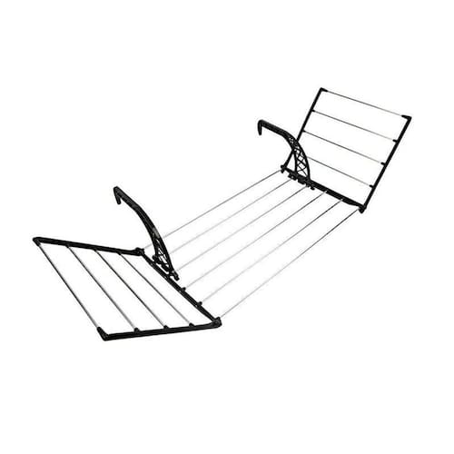 Varal de abas em alumínio com ganchos para ser pendurado em janelas e muros. Sem pés, extremamente compacto e leve.
