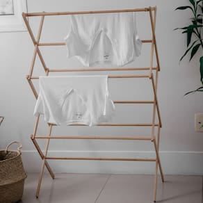 "conheça o Varal vertical 3 andares em bambu da Simplo!