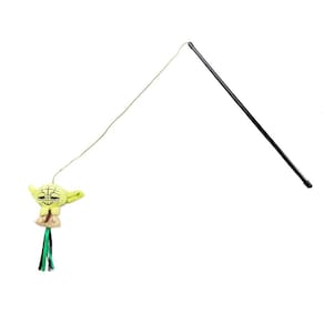 Leve este Yoda infantil para casa, para seu felino peludo. Apresenta um Yoda pendurado em sua juventude, com infusão de erva-dos-gatos. A alça de varinha de 18 polegadas permite brincadeiras interativas com seu gato.