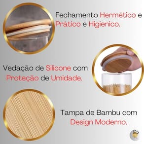 Sua tampa de bambu possui vedação em silicone, proporcionando um fechamento hermético que impede a entrada de ar e umidade, prolongando a conservação dos mantimentos.