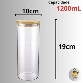 Capacidade de 1200ml, ideal para armazenar diversos tipos de alimentos secos, vidro borossilicato resistente a variações de temperatura, durável e fácil de higienizar, tampa de bambu com vedação hermética de silicone para melhor conservação, design moderno e funcional, combinando sofisticação e praticidade para a organização da cozinha.