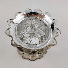 Vem decorar, seja INIGUAL USO: Deixe seu ambiente muito mais charmoso com este lindo Castiçal Porta- Velas que pode ser também como Vasinho Use na sua sala, varanda, área gourmet, escritório, quarto, enfim.. Onde sua imaginação mandar MEDIDAS: Altura: 11,0m / Diâmetro: 10,5cm / Peso: 690g CONTEÚDO: 1 Castiçal vasinho Prateado MATERIAL: Vidro ATENÇÃO OBS. As velas e as Plantas NÃO estão inclusas nesse anúncio, são meramente ilustrativas. Marca: Não Informado Ean: 7908103703954