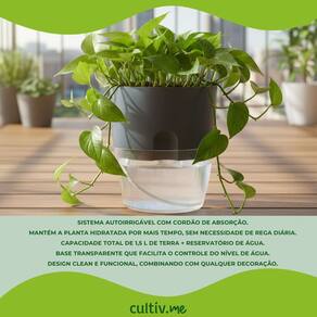 * Desenvolvido com sistema de autoirrigação, possui corda para absorção que garante a quantidade ideal de água para suas plantas, evitando o excesso ou a falta de irrigação.