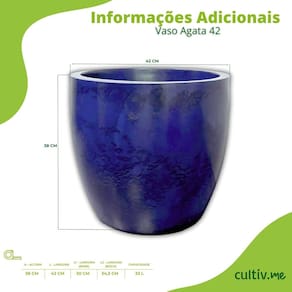 Vaso Agata 42 (33L) Cor Azul Vietnamita JAPI Descrição * O vaso Ágata 42 é inspirado na beleza natural da pedra preciosa Ágata. * Seu acabamento brilhante e cores exclusivas remetem às veias e tons da pedra, criando um visual sofisticado e único. * Ideal para composições harmônicas ou ousadas, valorizando qualquer planta. * Combina elegância, qualidade e originalidade, sendo perfeito para ambientes internos e externos. * Versátil, pode ser utilizado em salas, varandas, jardins e áreas gourmet.