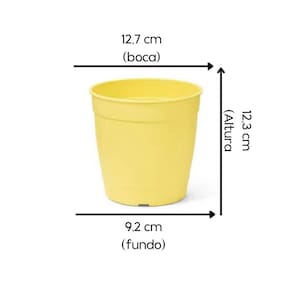 Vaso Aquarela 2,5 (1L) Amarelo NUTRIPLAN Descrição * Super leve e resistente, o vasinho colorido para plantas é fabricado em material plástico. * Ao utilizar o pratinho na parte superior o vaso se transforma em um lindo pote. * Vem com a marcação para facilitar os furos (não vem furado para que você possa usar como cachepô ou pote). * Em lindos tons, clarinhos, ideais para combinar com as mais diversas flores. Características * Altura: 12,3 cm * Largura boca: 12,7 cm * Largura do fundo: 9,2 cm * Cor: Amarelo Claro * Material: Plástico * Ref: 6101804-37