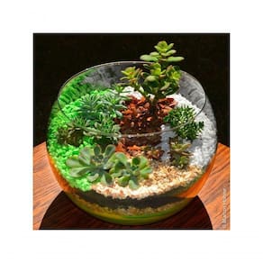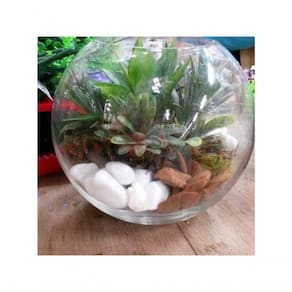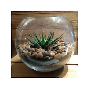 O vaso tipo Aquário é confeccionado em vidro transparente