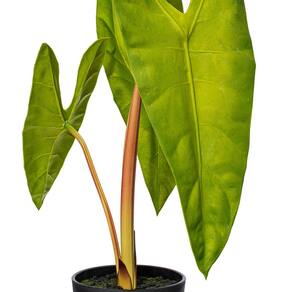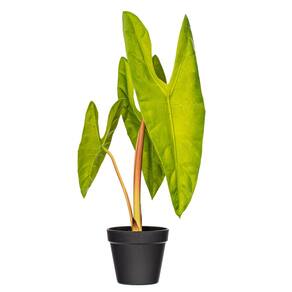Planta artificial em vaso de Alocasia Aequiloba Vickerman de 20" x 9". Vem em um pote de plástico preto.