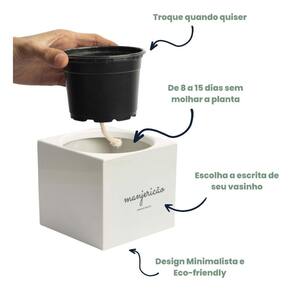 Benefícios do Vaso Autoirrigável: Facilidade de uso: O sistema de irrigação automática do vaso permite que as plantas sejam regadas de forma adequada, eliminando a necessidade de regar manualmente todos os dias. Economia de tempo: Com a automação da irrigação, você não precisará se preocupar em lembrar de regar suas plantas todos os dias, economizando tempo e esforço. Crescimento saudável: O Vaso Autoirrigável fornece água na medida certa, garantindo um crescimento saudável das plantas, com raízes fortes e folhagem exuberante. Controle de umidade: O sistema de autoirrigação evita o excesso ou a falta de água, mantendo o solo na umidade ideal para o desenvolvimento das plantas. Versatilidade: O vaso é adequado para diversos tipos de plantas, desde ervas aromáticas até vegetais e flores, permitindo que você cultive uma variedade de alimentos frescos e ornamentais em sua própria casa. Material: Plástico Cor: Cinza Claro Tamanho: 10cm x 11cm x 11cm O que acompanha: Vaso N11 com sistema autoirrigavel, Vaso quadrado Minimalista Sanchz Perguntas e Respostas: P: Como funciona o sistema de autoirrigação do Vaso Autoirrigável R: O sistema de autoirrigação é composto por um reservatório de água e um pavio ou cordão que leva a água até o solo. À medida que a planta absorve a água, o reservatório é gradualmente esvaziado e pode ser reabastecido periodicamente. P: Posso pendurar o vaso R: Sim. O vaso acompanha vem pré furado para fixar na parede. Não dependendo de suportes adicionais P: Posso usar o Vaso Autoirrigável tanto em ambientes internos quanto externos R: Sim, o Vaso Autoirrigável é projetado para ser tanto em ambientes internos, como cozinhas ou salas de estar, quanto em ambientes externos, como varandas ou jardins. Basta escolher o local adequado de acordo com as necessidades de luz solar das plantas escolhidas. Marca: Não Informado