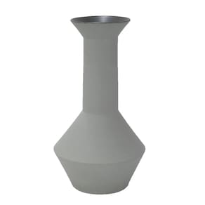 Vaso de flores Benjara Accent, pescoço estreito, formato geométrico, cerâmica branca de 14 polegadas