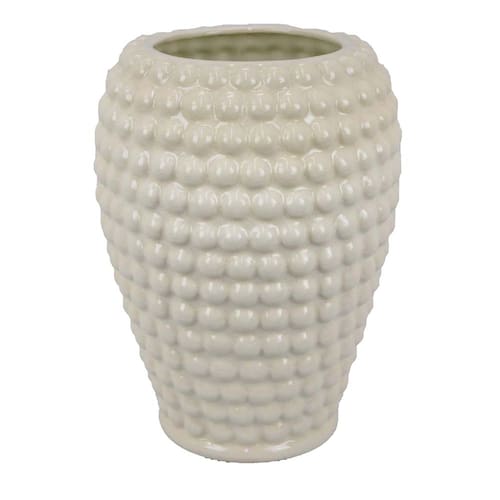 Vaso redondo Benjara Rozie com design de textura de bolha, cerâmica branca de 15 polegadas