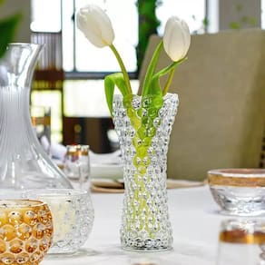O vaso Bubble é um objeto decorativo elegante e versátil, ideal para complementar a decoração de interiores de forma sofisticada. O vaso redondo de vidro tem transparência e brilho, permitindo que seja utilizado tanto sozinho quanto com arranjos florais. Apresenta um formato cilíndrico com efeito de bolhas, que adiciona textura e interesse visual ao vaso. O design contemporâneo se adapta facilmente a diferentes estilos de decoração ou outros elementos decorativos. É uma peça versátil que pode ser usada em qualquer ambiente da casa, como sala de estar, quarto, escritório ou até mesmo em eventos especiais.