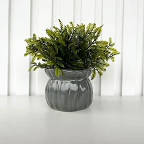 Material do item: Cerâmica. Cor Predominate: Cinza. Planta artificial acompanha o vaso.