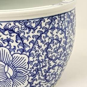 Design Clássico e Atemporal: Padrão floral e arabesco em azul e branco, inspirado na rica porcelana tradicional. Material Nobre: Fabricado em porcelana de alta qualidade, garantindo beleza e durabilidade. Versatilidade Decorativa: Ideal para plantas, flores, ou como peça decorativa avulsa. Ponto Focal Elegante: Tamanho e design que garantem destaque no ambiente. Beleza e Funcionalidade: Combina a arte da porcelana com a utilidade de um cachepot.