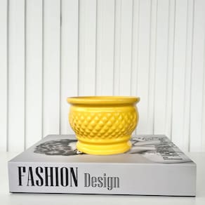 Cor: Amarelo. Material: Cerâmica. Tamanho do vaso: Médio.