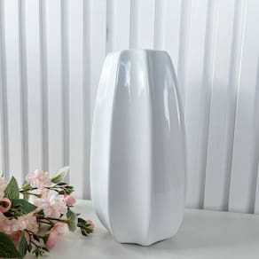 Decoração sala rack aparador vaso centro de mesa grande de cerâmica moderno trabalhado alto relevo na cor branca decoração luxo.