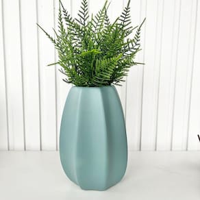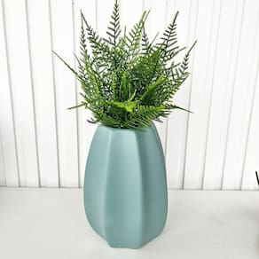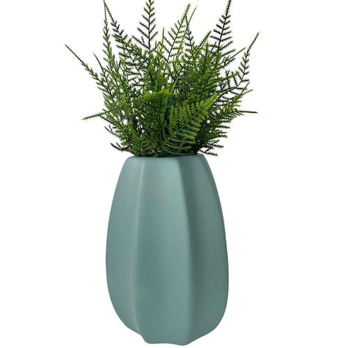 Decoração sala rack aparador vaso centro de mesa médio de cerâmica moderno trabalhado alto relevo na cor verde menta decoração luxo com arranjo planta artificial.