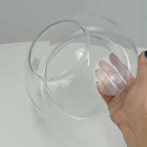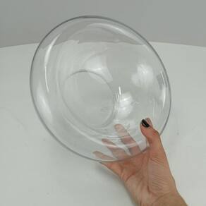 CENTRO DE MESA Altura: 12,7 cm Largura: 25,5 cm Profundidade: 25,5 cm Peso: 0,92 Kg Diâmetro da Base: 12 cm Material: Vidro Cor: Transparente