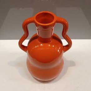 VASO Altura: 25 cm Largura: 17 cm Profundidade: 17 cm Espessura: ,4 cm Peso: 0,89 Kg Diâmetro da Base: 10,4 cm Diâmetro do Corpo: 12 cm Diâmetro do Topo: 5,2 cm Material: Cerâmica Cor: Laranja
