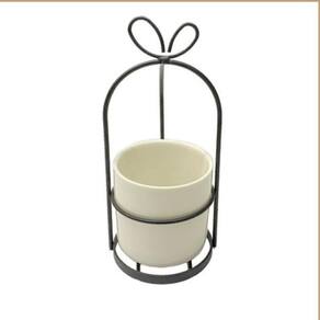 Além de ter um design delicado e com tons suaves que alegram o ambiente, o vaso tem seu material em Cerâmica, já o suporte segue com o metal que possui uma boa qualidade e uma durabilidade maior.