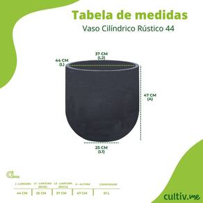 Vaso Cilíndrico Rústico 44 (51L) Cor Grafite JAPI Descrição * O Vaso Cilíndrico Rústico possibilita arranjos e decorações compatíveis com áreas internas e externas, dando um leque de opções para explorar. * Ideal para ambientes criativos, uma ótima opção para quem busca um vaso autêntico e de personalidade, fazendo essa linha uma ótima escolha para sua casa!
