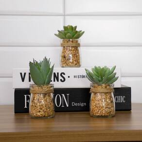 Vaso com Suculenta Folha Alta Verde Claro 10x7 cm - D`Rossi