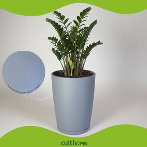 Características * Altura: 46,5 cm / 45cm sem o prato * Largura: 30 cm * Boca: 25,5 cm * Base: 22 cm * Prato: 23 cm (incluso) * Material: Polietileno de alta qualidade * Acabamento: Jateado fosco * Cor: Cimento * Ambientes: Interno e externo * Proteção UV: Sim * 100% reciclável: Sim