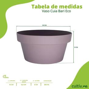 Informações/Dicas/Usos * A cor do vaso à venda é Violeta Vintage. * Prato ideal: Prato 12, o prato não está incluído e é vendido separadamente. * Quaisquer outras cores, pratos, plantas, suportes, acessórios e dimensões mostrados nas imagens são apenas ilustrativos.