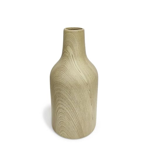 Vaso de cerâmica com acabamento estilo madeira, combinando a rusticidade e beleza natural da madeira com a durabilidade e versatilidade da cerâmica. Seu design apresenta texturas e nuances que imitam a aparência da madeira, criando um visual único e acolhedor para qualquer ambiente. Ideal para compor espaços com uma decoração aconchegante e orgânica, este vaso é perfeito para quem busca um toque de natureza e sofisticação. Disponível em diferentes tamanhos e com a possibilidade de ser combinado com plantas ou flores, ele adiciona elegância e charme a salas, varandas ou escritórios.