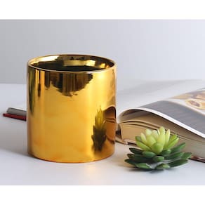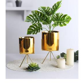 Vaso de Ceramica Decorativo Tripé em Metal Dourado Flores Plantas - TAMANHO COR: VASO DOURADO 15,5CM