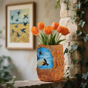 Material: resina Peso: 450 g Tamanho: 19 x 18,5 x 22 cm Design inspirado na arte de Van Gogh — Vaso de flores exclusivo com um céu estrelado e pássaros voando sobre um campo de trigo, adicionando um toque artístico e elegante a qualquer espaço. Material de resina durável — Feito de resina de alta qualidade, leve e resistente, resistente ao desbotamento, adequado para uso interno e externo de longo prazo. Ideal para suculentas e expositores florais — Perfeito para suculentas, ervas, cactos ou arranjos de flores, criando uma exibição de plantas vibrante e criativa. Acento decorativo versátil — Adequado para decoração de sala de estar, mesa, varanda, pátio ou jardim, combinando funcionalidade com estilo artístico. Dimensões do produto — mede 19 x 18,5 x 22 cm, pesa 450 g; tamanho prático para colocação de mesas, parapeitos de janelas ou entradas, aprimorando a decoração moderna da casa.