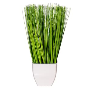 Vickerman Vaso de grama verde artificial para ambientes internos de 42 cm - Vaso branco clássico - Folhagem colorida realista de plástico durável - Sem manutenção