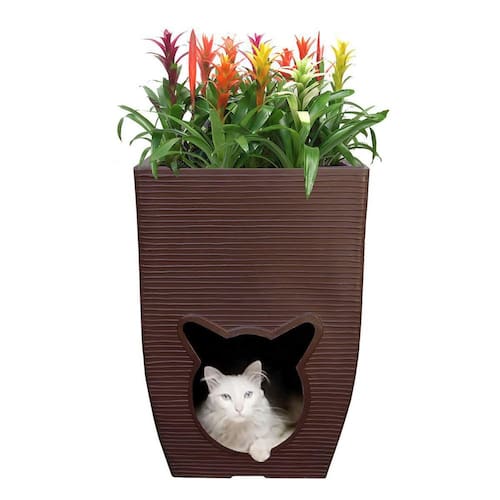 Vaso de planta com casa de gato produzido de resina de polietileno. Não acompanha a planta; Acompanha uma linda almofada dupla face; Medidas: 60cm de Altura 40cm de Largura 25cm de Profundidade 32cm de Base 4 Kg Medidas da porta: 23cm Altura 20cm Largura Grandes Vantagens do Polietileno Grande durabilidade, resistência e leveza; Podem ficar expostos ao sol, chuva, poeira e maresias; Podem ser mantidos em contato permanente com o solo; Impermeáveis e laváveis; Não prolifera fungos e bactérias; Não tóxico; Não mofam e não ressecam; Não soltam farpas ou rachaduras; Não desbotam; Não necessitam de manutenção; Possuem proteção contra raios ultra-violeta UV Duram mais que concreto, cerâmica, fibra e outros