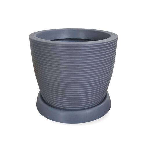 Vaso De Planta Pilão Polietileno 30X30 + Prato Cinza Escuro