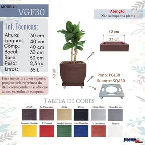 Anúncio válido para 1 um vaso quadrado de resina de polietileno para plantas naturais e artificiais. Não acompanha prato, plantas e nem suporte.Vaso com largura maior para plantas de pequeno a médio porte, que necessitam de espaço para desenvolvimento. Destaca-se pela delicadeza e leveza, ideal para decoração, o design e a textura oferecem elegância e beleza, transformando seu ambiente.Modelo VGF30Medidas técnicas:Altura: 30 cm; largura: 40 cm; base: 30 cm; peso: 2,2 kg / 35 lGrandes vantagens do polietilenoGrande durabilidade, resistência e leveza;Podem ficar expostos ao sol, chuva, poeira e maresias;Podem ser mantidos em contato permanente com o solo;Impermeáveis e laváveis;Não proliferam fungos e bactérias;Não mofam e não ressecam; Não soltam farpas ou rachaduras;Não desbotam;Não necessitam de manutenção;Possuem proteção contra raios ultra-violeta uv ;Duram mais que concreto, cerâmica, fibra e outros;