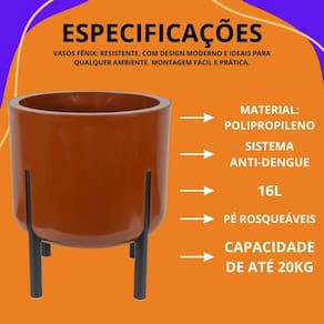 ESPECIFICAÇÕES DETALHADAS: Capacidade: 16 litros Altura: 36cm Diâmetro superior: 33 cm Material: Polietileno resistente Sistema: Reservatório com dreno interno anti-dengue Uso: Interno e externo Indicado para: Plantas decorativas, frutíferas, folhagens, flores e hortas residenciais.