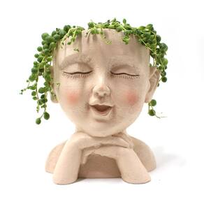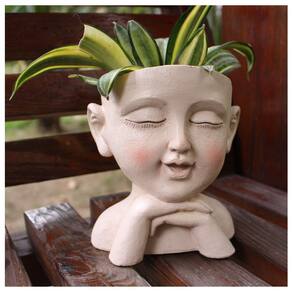 Material: resina Peso: 700 g Tamanho: 14,5 x 14 x 16,5 cm Design de desenho animado alegre — Vaso de flores criativo em forma de rosto sorridente com olhos fechados e pose de mão no queixo, adicionando alegria e personalidade à decoração de sua casa ou escritório. Material de resina durável — Feito de resina de alta qualidade, este vaso de plantas é robusto, leve e resistente ao desbotamento, ideal para suculentas, ervas ou flores pequenas. Tamanho decorativo perfeito — Medindo 14,5 x 14 x 16,5 cm e pesando 700 g, este vaso é compacto, mas atraente, adequado para desktops, varandas, parapeitos de janelas ou prateleiras. Funcional e ornamental — funciona como um prático vaso de flores e uma estatueta artística, aprimorando salas de estar, escritórios, varandas e jardins internos com um charme único. Artesanato requintado — O acabamento liso em resina e os detalhes esculpidos à mão destacam a arte refinada, tornando este vaso de flores um vaso decorativo elegante para interiores modernos.