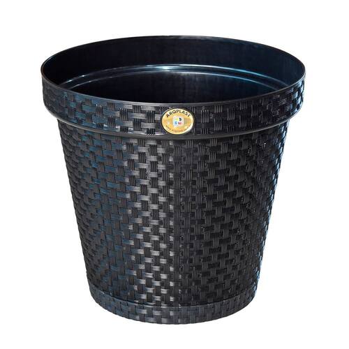 Descrição: Vaso de Plantas Redondo com Prato Rattan 10 Litros Preto Arqplast